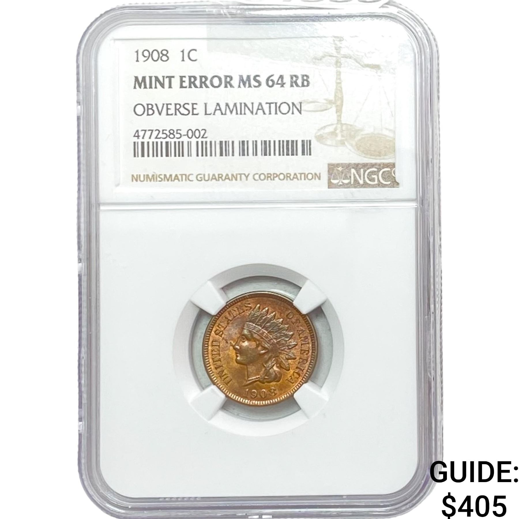 1908 Indian Head Cent NGC MS64 RB ERROR