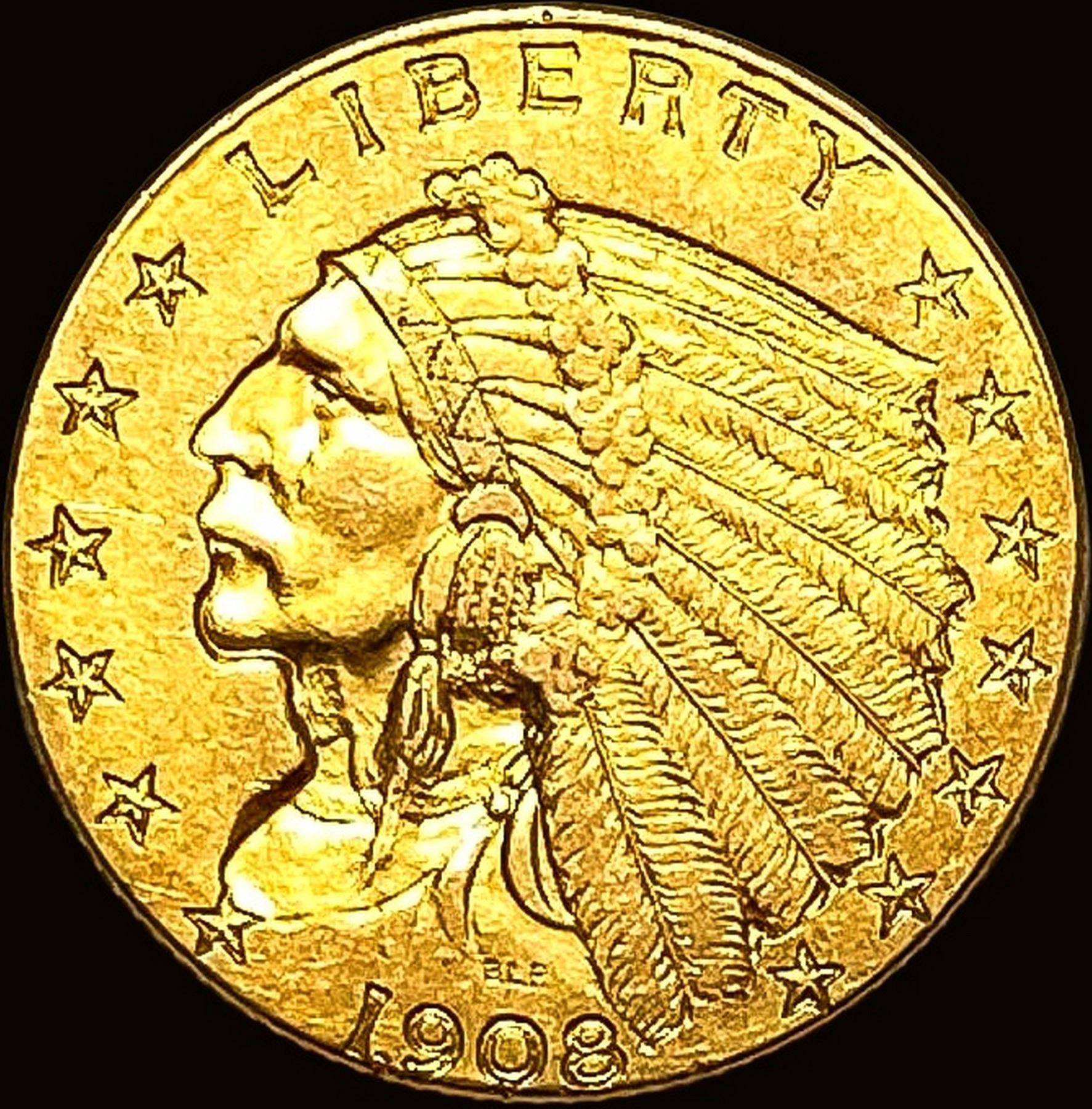 1908 Indian Head Gold $2.5 Quarter Eagle CLOSELY UNCIRCULATED