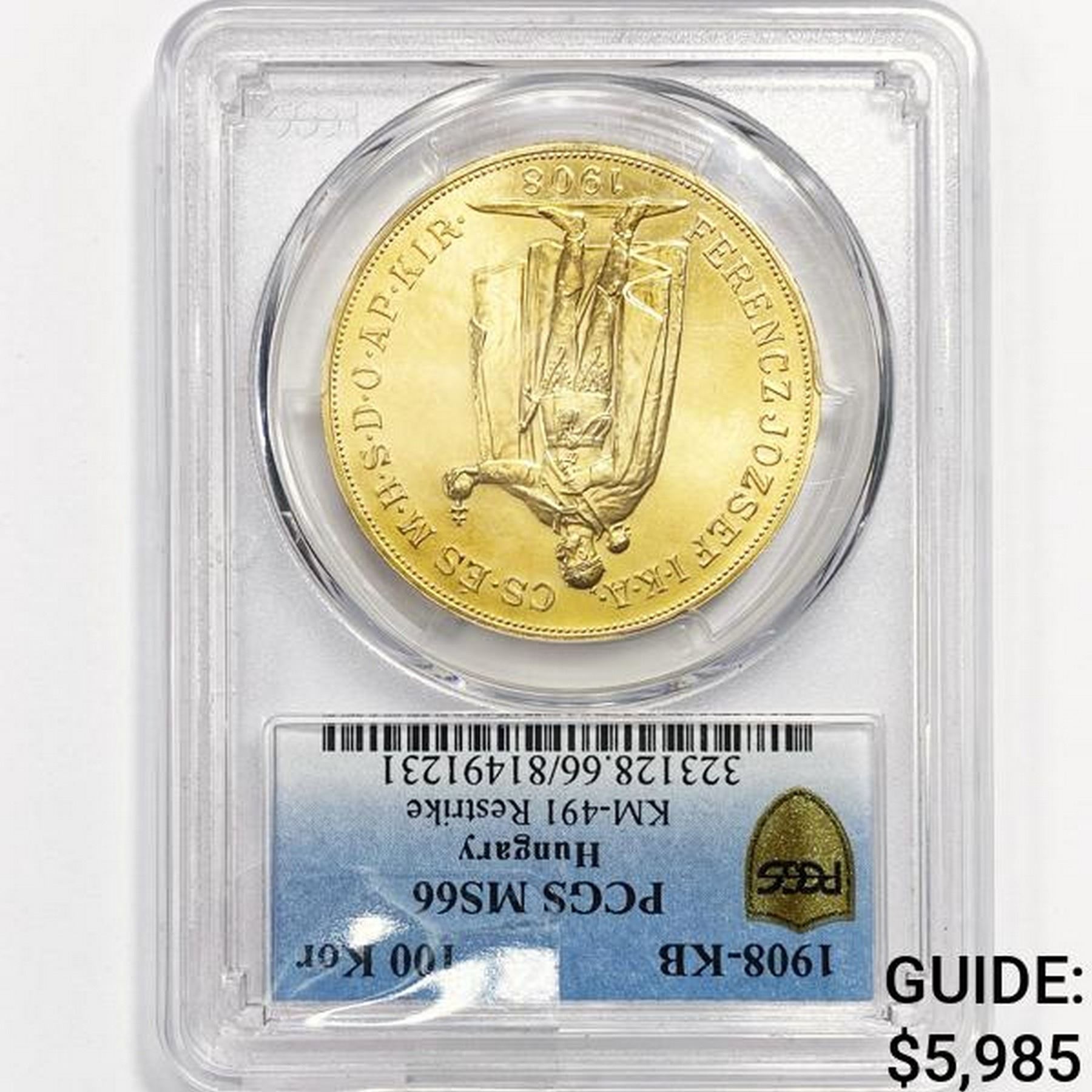 1908-KB 100 Kor .98oz Hungary Gold PCGS MS66