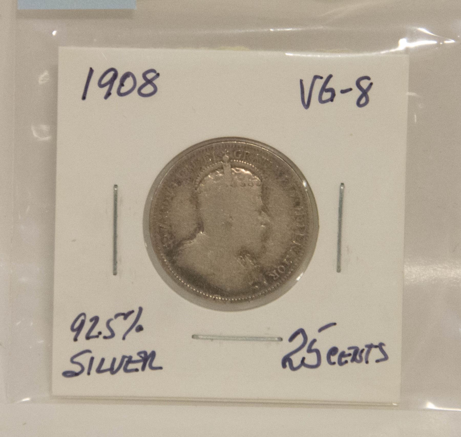 1908 KING EDWARD 92.5% SILVER 25 CENTS