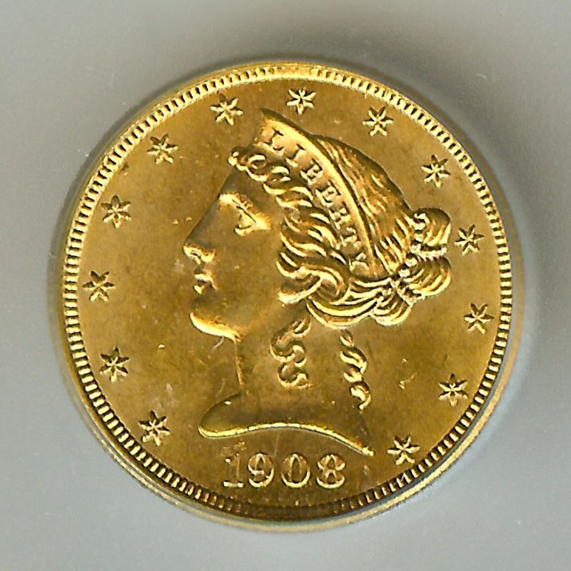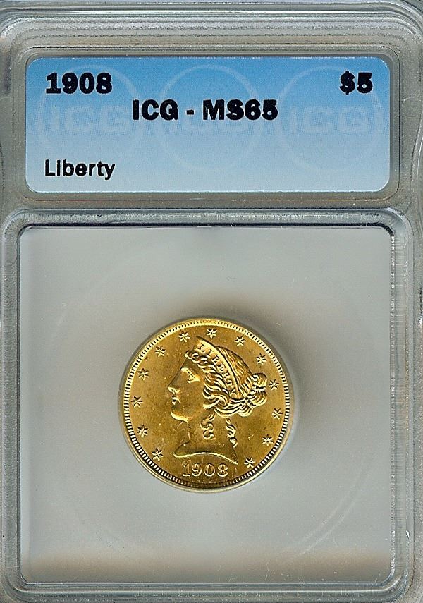 1908 LIBERTY HEAD $5 GOLD HALF EAGLE ICG MS65 LAST DATE OF THE LIBERTY SERIES!