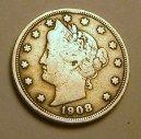 1908 LIBERTY "V" NICKEL RED BOOK VALUE IS $7.00+ *NICE EARLY FINE GRADE*!! LIBERTY NICKEL CAME OUT OF SAFE BOX!! ***Coin, Currency & All Items Listed in this auction - Grades, Conditions and Values are not Safe Deposit Coins LLC Responsibilty. Grades, Condition and Values are determined by Consigner(s) & Buyers ONLY