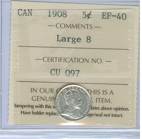 1908 "Large" 8 variety 5¢ ICCS EF40 Popular variety and underrated in this designation