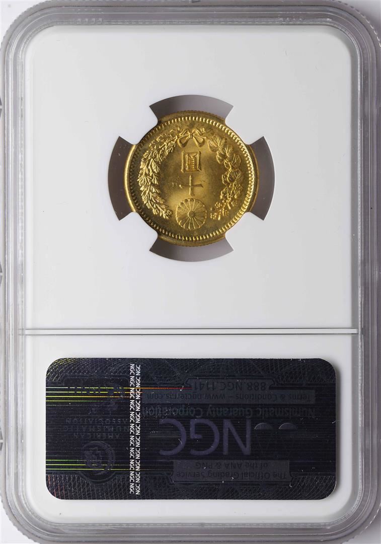 One 1908 M41 Japan 10 Yen Ministry of Finance Gold Coin NGC MS65. NGC Certified.