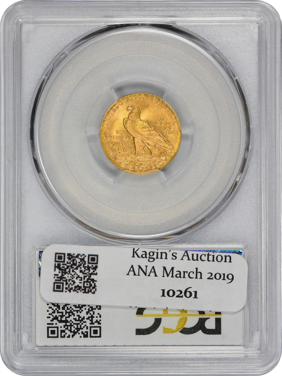 A first-glance matte-surface coin with satiny honey-gold surfaces that enjoy richly imbued luster and with not a single naked-eye blemish available. As choice as the grade implies, and about as fine as will ever be available in today’s marketplace – the three specimens graded finer than this beauty are no doubt already in advanced collections. Don’t hesitate here if you mean to have the finest quality Indian quarter eagle of the date available. PCGS #7939