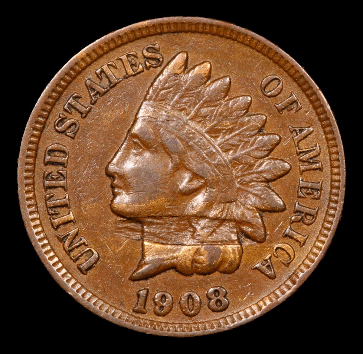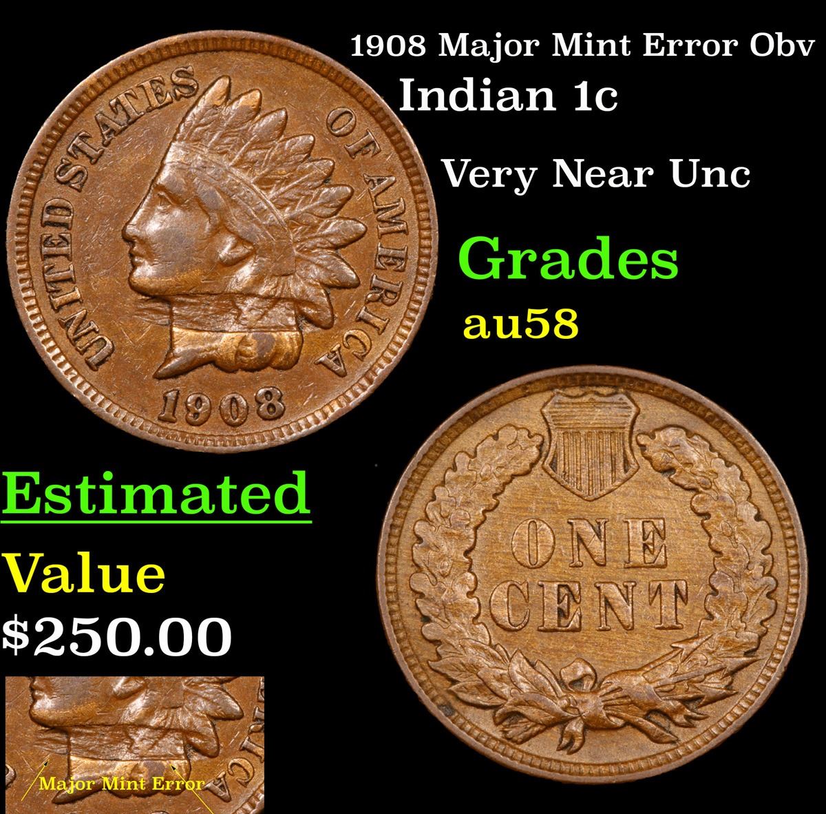 1908 Major Mint Error Obv Indian Cent 1c Grades Choice AU/BU Slider.