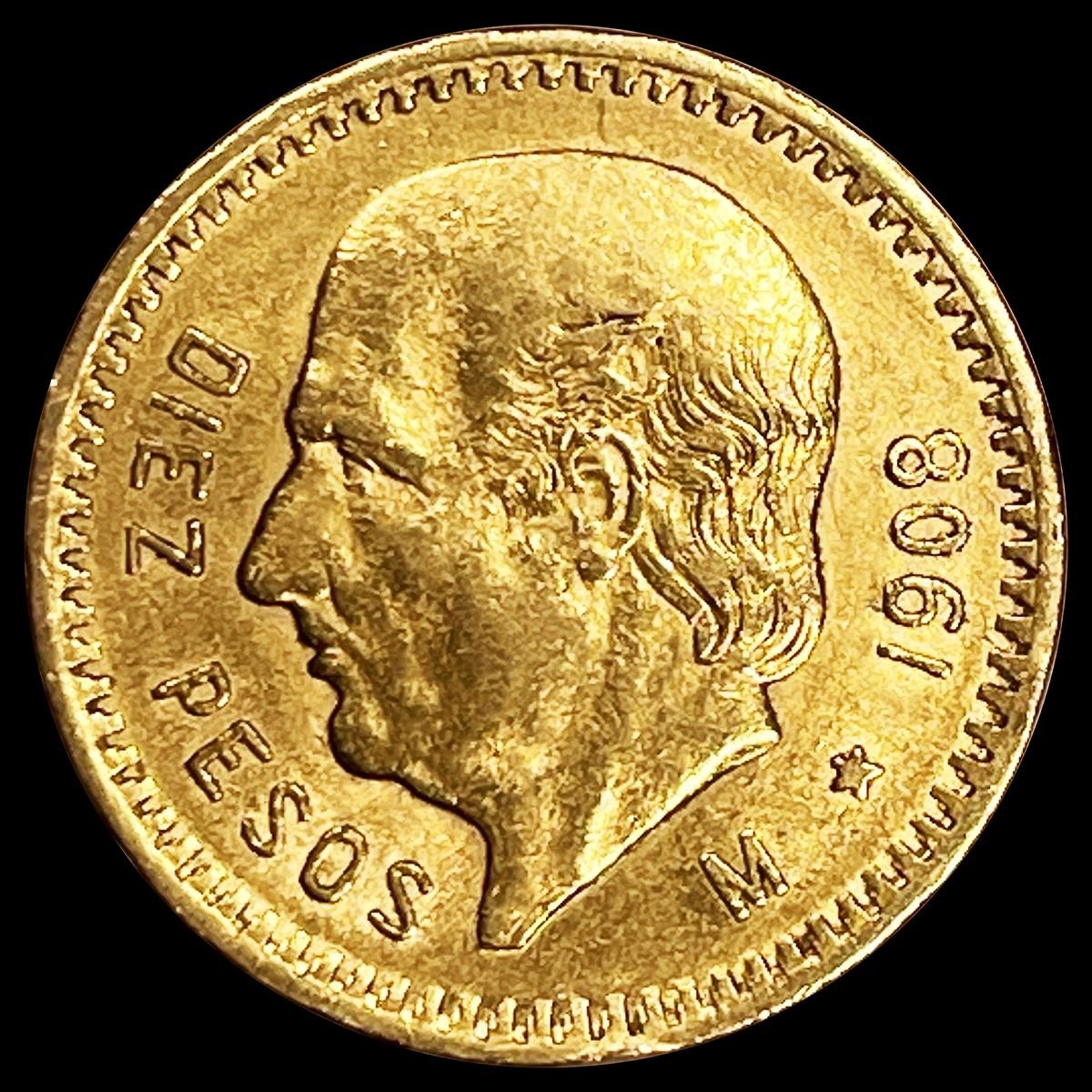 1908 Mexico Gold 10 Pesos UNCIRCULATED
