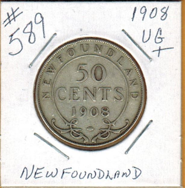 1908 NEWFOUNDLAND 50 CENT PIECE