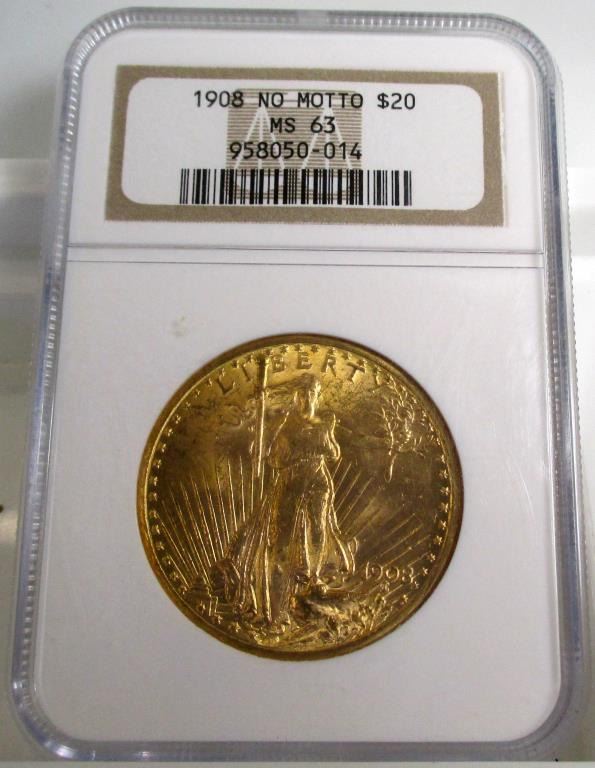 1908 NM MS 63 NGC $ 20 Gold Saint