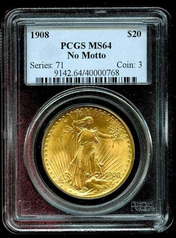 1908 NM MS 64 PCGS $ 20 Saint Gauden's