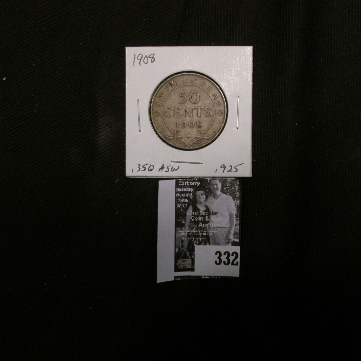 1908 Newfoundland Silver Half Dollar, VG.