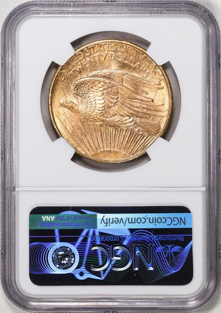 One 1908 No Motto $20 St. Gaudens Double Eagle Gold Coin NGC MS62. NGC Certified.