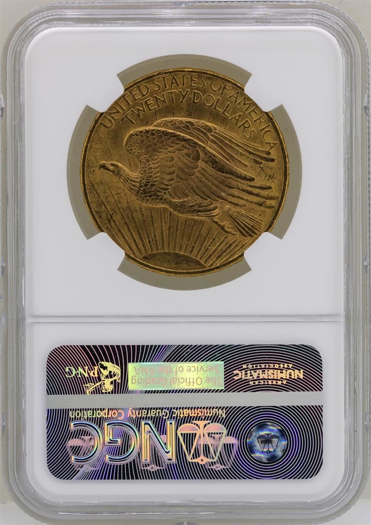 One 1908 No Motto $20 St. Gaudens Double Eagle Gold Coin NGC MS63. NGC Certified.