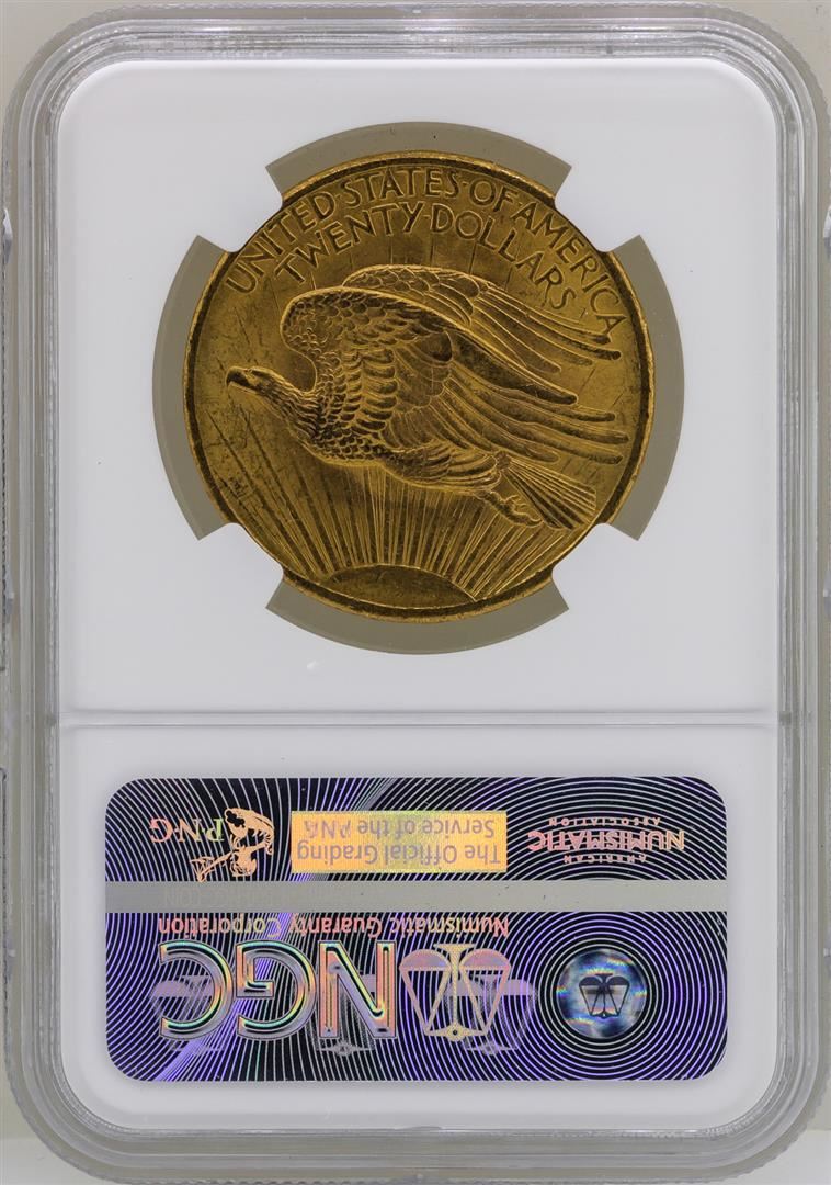 One 1908 No Motto $20 St. Gaudens Double Eagle Gold Coin NGC MS63. NGC Certified.