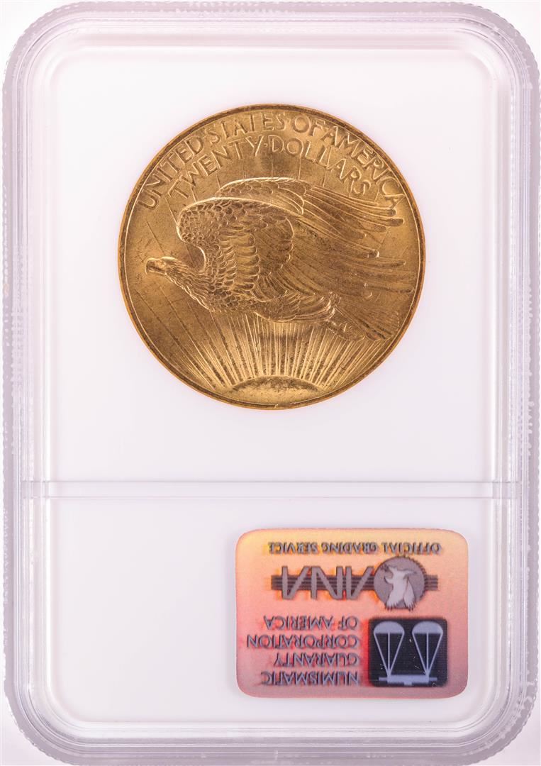 One 1908 No Motto $20 St. Gaudens Double Eagle Gold Coin NGC MS63. NGC Certified.