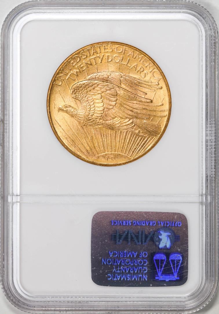 One 1908 No Motto $20 St. Gaudens Double Eagle Gold Coin NGC MS64. NGC Certified.