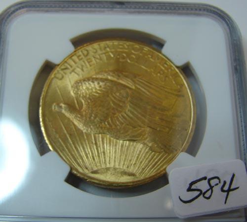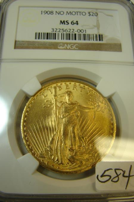 1908 No Motto $20 St. Gaudens Gold Coin NGC MS64