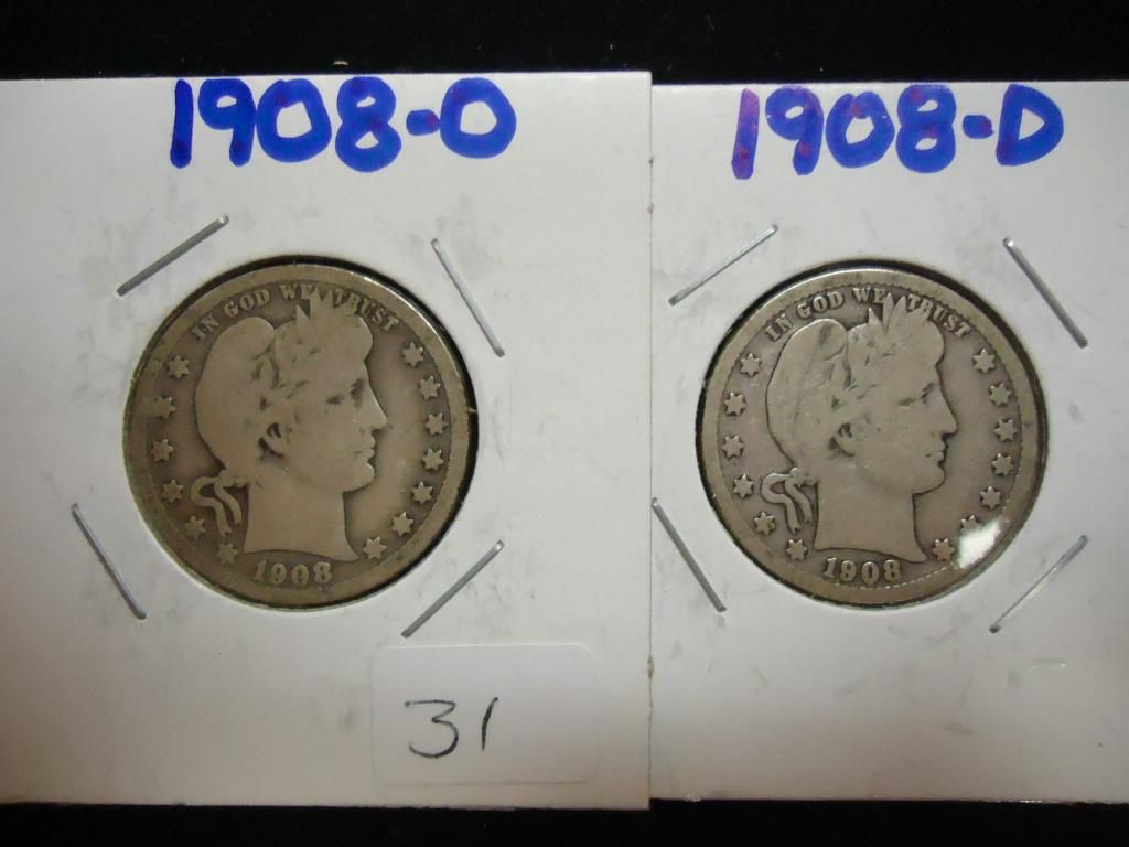 1908-O & 08-D BARBER QUARTERS