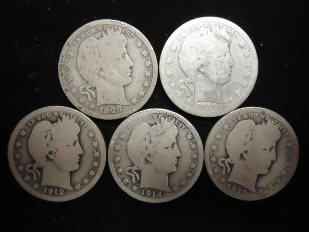 1908-O,11,12,14 & 15 BARBER QUARTERS