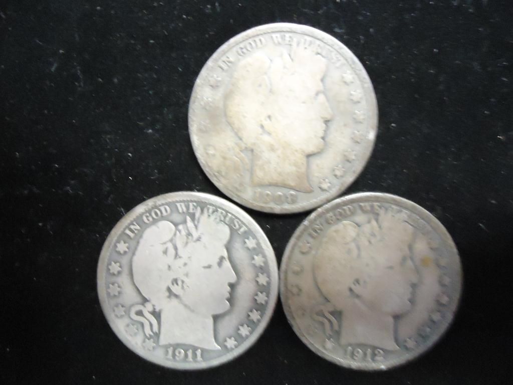 1908-O,11 & 12-D BARBER HALF DOLLARS