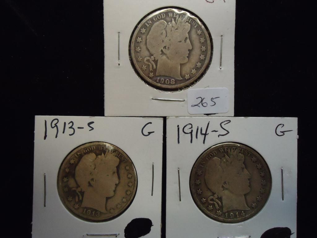 1908-O,13-S & 14-S BARBER HALF DOLLARS