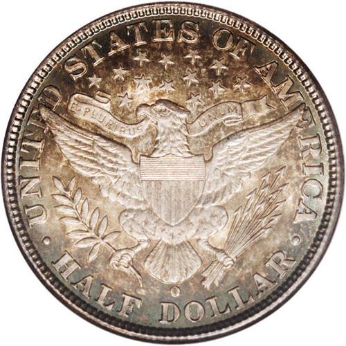 <B>1908-O<50C> MS66 NGC.</B></I> The 1908-O is one of the more frequently encountered post-1900 issues in the Barber half series, as one would expect from the mintage of 5.36 million pieces. Gems are seldom seen, however. This piece has the usual satiny mint luster of a New Orleans product with an overlay of deep gray and golden-rose in the centers and cobalt-blue around the margins. Well struck for an O-mint with a only a couple of areas of softness over the highpoints. Census: 8 in 66, 6 finer (3/06). <BR><BR><B>Important notice:</B> Heritage usually auctions material at the rate of 200-250 lots per hour. On some occasions eBay Live bid software or the Internet may not be able to keep up with the pace of the auction. We recommend placing a realistic absentee bid now as insurance to avoid disappointment. Occasionally the auctioneer may eliminate or reject an eBay Live bid, and the auctioneer may also reopen a lot after the close of the eBay live bidding (usually because we missed an audience bid), and may reject your bid even if it shows you as the winning bidder. By bidding via eBay Live, you agree that Heritage may award the lot to another bidder at its sole discretion under the circumstances described above or any other reasonable circumstances. Since eBay bids are not shown to us until we open the lot on the floor, we treat those bids just like floor bids. In most cases the floor responds before the eBay bid is presented to us, due to Internet lag time, so for consistency we have made it a policy that floor bids are always considered first over tie eBay live bids. Also please note that all Heritage lots purchased through eBay Live carry a 20% Buyer's Premium. Please make sure you read the Terms and Conditions before you bid. This lot is being auctioned in conjunction with a live floor auction by Heritage Galleries & Auctioneers. All final auction and invoice information will be supplied by Heritage Galleries & Auctioneers, and all other information should be considered preliminary. Lot:2072 <BR><BR><B>Winning Notification and Billing:</B> After the FINAL session in this auction is complete, Heritage will send e-mail and snail mail invoices. This process normally takes several days. All final auction and invoice information will be supplied by Heritage Galleries & Auctioneers, and all other information should be considered preliminary. <BR><BR>This auction will be conducted on a live auction floor and over the Internet through eBay Live. If you choose to place an absentee bid, please take a moment to <font color='#0000ff'><u><a href='http://pages.ebay.com/liveauctions/help/before/laabsentee.html'>learn how eBay Live absentee bidding works</a></u></font><font color='#000000'>