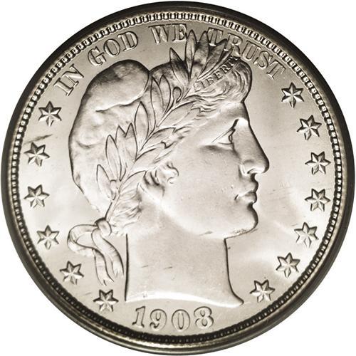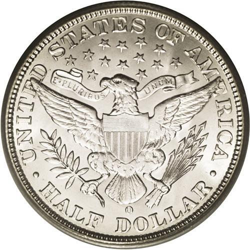 <B>1908-O<50C> MS66 PCGS.</B></I> This is a beautifully preserved, although typically struck, representative of this popular O-mint issue. Both sides are essentially brilliant, save for the slightest hint of pale rose color. The obverse is unusually well defined, however, the eagle's neck, right talon, and right shoulder are noticeably flat. The surfaces are smooth and shimmer displaying full, frosty luster. Despite its incomplete strike, this is an attractive, original Premium Gem that would fit nicely into a high grade collection. Population: 15 in 66, 11 finer (6/06).