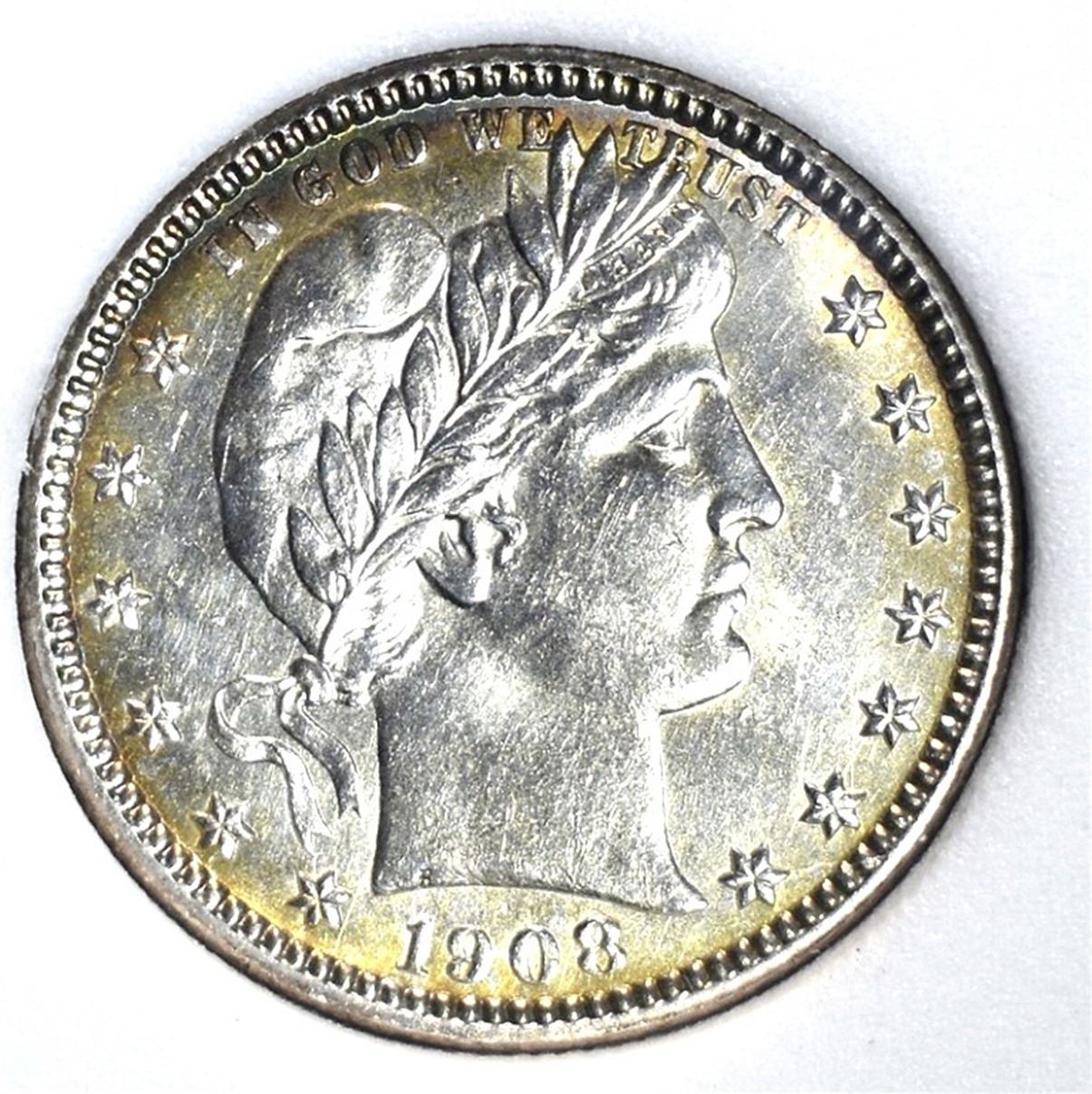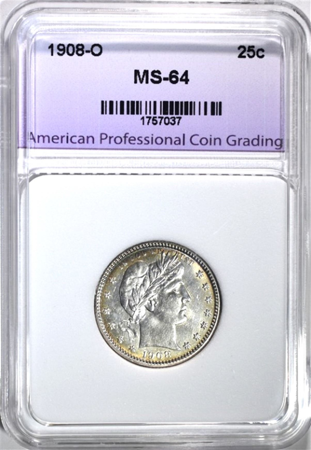 1908-O BARBER QUARTER, APCG, CH/GEM BU