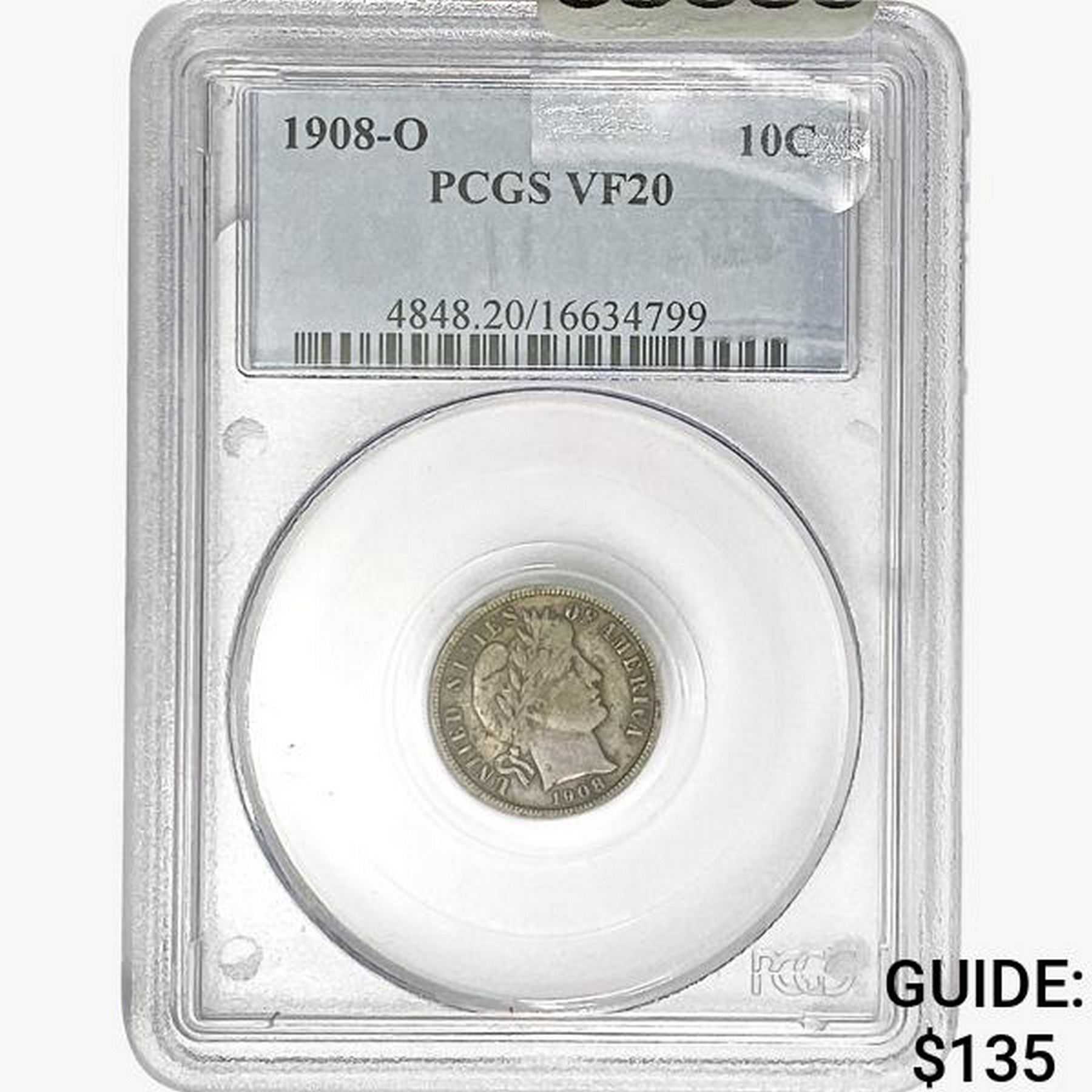 1908-O Barber Dime PCGS VF20