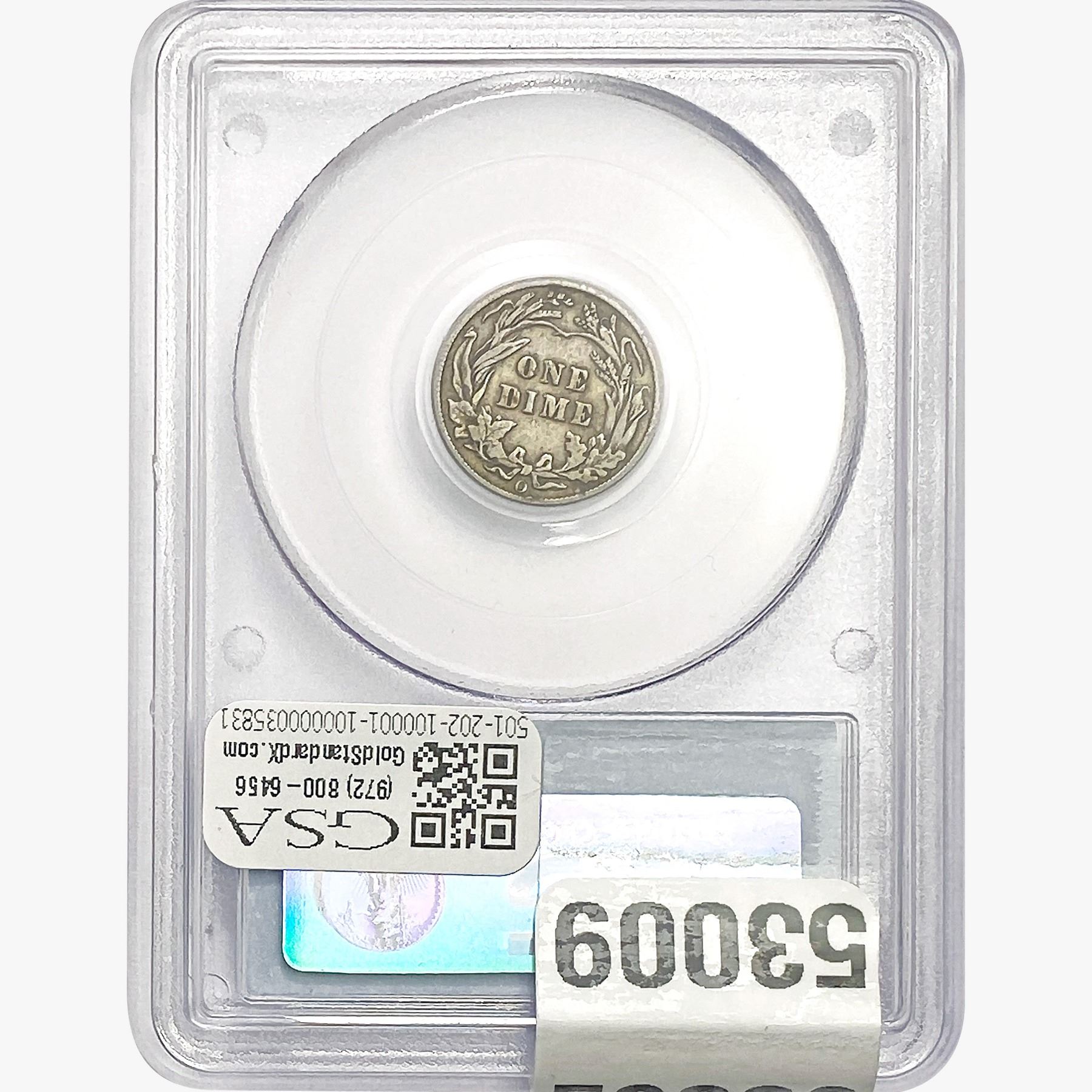 COINS AND CURRENCY LISTED IN GSA’S CATALOG AS GRADED AND ENCAPSULATED BY PCGS, NGC, ANACS, ICG, PCGS CURRENCY, PMG, PCGS BANKNOTE GRADING, CMC OR ANY OTHER THIRD-PARTY GRADING SERVICE ARE LIKEWISE SOLD “AS-IS” EXCEPT AS EXPRESSLY SET FORTH HEREIN. ALL THIRD-PARTY GRADING SERVICE GUARANTEES, INCLUDING AUTHENTICITY, ARE THE SOLE RESPONSIBILITY OF THE THIRD-PARTY GRADING SERVICE AND NOT WARRANTIES OR GUARANTEES OF GSA. BIDDERS SHOULD CONTACT THESE THIRD-PARTY GRADING SERVICES DIRECTLY WITH RESPECT TO ANY CLAIMS OR QUESTIONS THEY MAY HAVE CONCERNING THEIR GUARANTEES AND WARRANTIES. BIDDERS ACKNOWLEDGE AND AGREE THAT AUCTIONEER IS NOT BOUND BY OR LIABLE FOR ANY OPINION OR CERTIFICATION BY ANY THIRD-PARTY GRADING SERVICE. REMOVAL OF A PRODUCT FROM ITS PROTECTIVE CASING OR HOLDER OR ALTERATION OF ANY COIN HOLDER WAIVES ALL RIGHTS CONCERNING THE PRODUCT CONTAINED THEREIN.