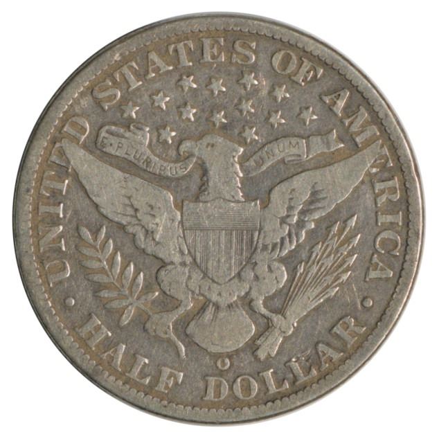 One 1908-O Barber Half Dollar Coin.