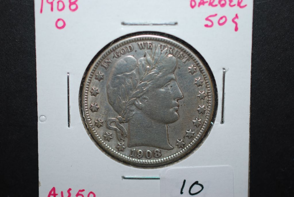 1908-O US Barber Half Dollar; AU50; EST. $120-140