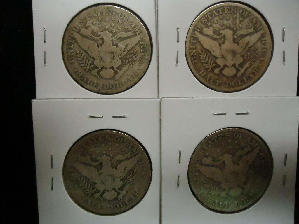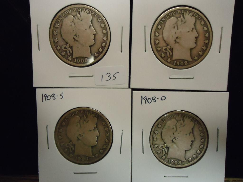 1908-P/D/S/O BARBER HALF DOLLARS 4 COINS
