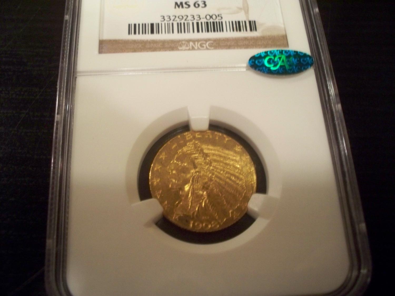 1908 PCGS Graded MS-63 $5 Gold Indian
