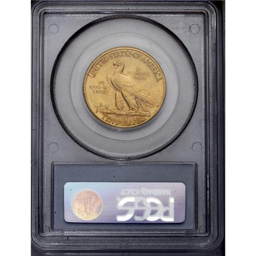 <B>1908-S<$10> AU58 PCGS.</B></I> Nearly full luster is visible with rich yellow-gold and orange-gold coloration. Light to moderate marks are tolerated at this grade level. <BR><BR><B>Important notice:</B> Heritage usually auctions material at the rate of 200-250 lots per hour. On some occasions eBay Live bid software or the Internet may not be able to keep up with the pace of the auction. We recommend placing a realistic absentee bid now as insurance to avoid disappointment. Occasionally the auctioneer may eliminate or reject an eBay Live bid, and the auctioneer may also reopen a lot after the close of the eBay live bidding (usually because we missed an audience bid), and may reject your bid even if it shows you as the winning bidder. By bidding via eBay Live, you agree that Heritage may award the lot to another bidder at its sole discretion under the circumstances described above or any other reasonable circumstances. Since eBay bids are not shown to us until we open the lot on the floor, we treat those bids just like floor bids. In most cases the floor responds before the eBay bid is presented to us, due to Internet lag time, so for consistency we have made it a policy that floor bids are always considered first over tie eBay live bids. Also please note that all Heritage lots purchased through eBay Live carry a 20% Buyer's Premium. Please make sure you read the Terms and Conditions before you bid. This lot is being auctioned in conjunction with a live floor auction by Heritage Galleries & Auctioneers. All final auction and invoice information will be supplied by Heritage Galleries & Auctioneers, and all other information should be considered preliminary. Lot:4110 <BR><BR><B>Winning Notification and Billing:</B> After the FINAL session in this auction is complete, Heritage will send e-mail and snail mail invoices. This process normally takes several days. All final auction and invoice information will be supplied by Heritage Galleries & Auctioneers, and all other information should be considered preliminary. <BR><BR>This auction will be conducted on a live auction floor and over the Internet through eBay Live. If you choose to place an absentee bid, please take a moment to <font color='#0000ff'><u><a href='http://pages.ebay.com/liveauctions/help/before/laabsentee.html'>learn how eBay Live absentee bidding works</a></u></font><font color='#000000'>