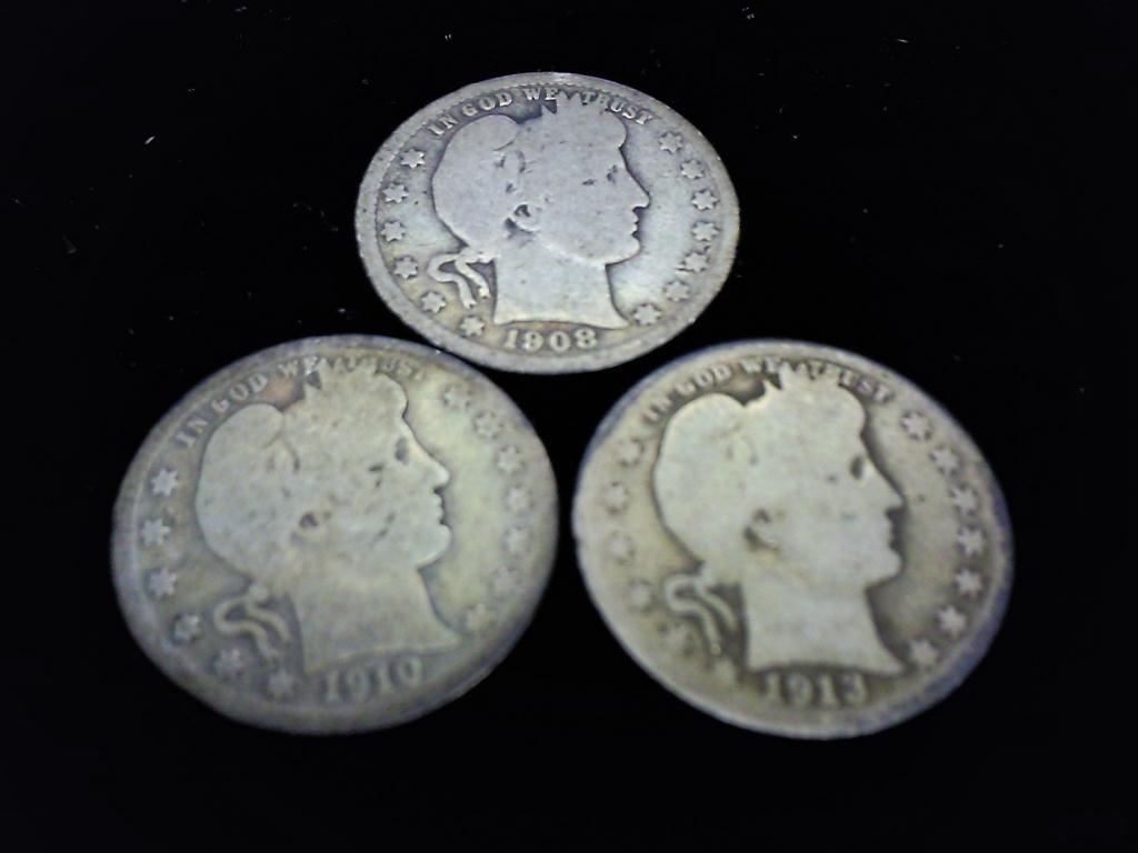 1908-S, 10-D & 13 BARBER QUARTERS