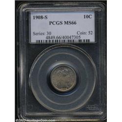 <table><tr><td><TABLE cellSpacing=0 cellPadding=0 width="100%" bgColor=#000000 border=0><TBODY> <TR><TD width="100%"><TABLE cellSpacing=1 cellPadding=3 width="100%" border=0><TBODY><TR><TD width="100%" bgColor=#79735c><FONT face=arial color=#ffffff size=3><B>Description</B> </FONT></TD></TR><TR><TD width="100%" bgColor=#ffffff><FONT face=arial size=2><B>1908-S 10C MS66 PCGS.</B></I> Produced in generous numbers, the 1908-S is not a particularly rare coin in circulated grades. Mint State survivors are another matter entirely, and the certified population of such coins dwindles to just nine NGC and PCGS examples at the MS66 level (9/03). Rich antique-copper toning envelops the obverse of this unquestionably original survivor. Argent-gold tones are evident on the reverse. The sharp strike and smooth features are equally free of criticism. </FONT></TD></TR></TBODY></TABLE></TD></TR></TBODY></TABLE><BR><A name=PricesRealized></A><TABLE cellSpacing=0 cellPadding=0 width="100%" bgColor=#000000 border=0><TBODY><TR><TD width="100%"><TABLE cellSpacing=1 cellPadding=3 width="100%" border=0><TBODY><TR><TD width="100%" bgColor=#79735c><A name=PR><FONT face=arial color=#ffffff size=3><B>Previous Prices from Heritage Auctions</B> </FONT></A></TD></TR><TR><TD bgColor=#f6f6ed><TABLE cellSpacing=0 cellPadding=0 width="100%" border=1><TBODY><TR><TD align=middle width="33%"><B>Date</B></TD><TD align=middle width="33%"><B>Service</B></TD><TD align=middle width="33%"><B>Price</B></TD></TR><TR bgColor=whitesmoke><TD width="33%"><B>03/23/2003</B></TD><TD width="33%">NGC</TD><TD width="33%">$3,450.00</TD></TR><TR bgColor=whitesmoke><TD width="33%"><B>06/01/1998</B></TD><TD width="33%">PCGS</TD><TD width="33%">$1,980.00</TD></TR></TBODY></TABLE></TD></TR><TR><TD bgColor=#ffffff><FONT face=arial size=1 ?>PLEASE NOTE: All prices realized reflect the final hammer price PLUS the buyer's premium in auctions that charge a buyer's premium. Each item has a notation at the top of the listing indicating whether that lot included a buyer's premium. Example: A item that sells with a final hammer price of $100 and a 20% buyer's premium will display with a price realized of $120. All information listed is intended to be as accurate as possible, but errors are possible. Please use this guide carefully and inform us of any inaccuracies. </FONT></TD></TR></TBODY></TABLE></TD></TR></TBODY></TABLE><BR><TABLE cellSpacing=0 cellPadding=0 width="100%" bgColor=#000000 border=0><TBODY><TR><TD width="100%"><TABLE cellSpacing=1 cellPadding=3 width="100%" border=0><TBODY><TR><TD width="100%" bgColor=#79735c colSpan=6><FONT face=arial color=#ffffff size=3><B>Price Guide*</B> </FONT></TD></TR><TR bgColor=#f6f6ed><TD align=middle><B>Grade</B> </TD><TD align=middle><B>Coin World<BR>(Trends)</B> </TD><TD align=middle><B>Numismedia<BR>Retail</B> </TD><TD align=middle><B>Numismedia<BR>Wholesale</B> </TD><TD align=middle><B>Coin<BR>Universe</B> </TD><TD align=middle><B>Heritage<BR>Value Index</B> </TD></TR><TR bgColor=#ffffff><TD align=middle>65</TD><TD align=right>$2,700.00</TD><TD align=right>---</TD><TD align=right>$1,440.00</TD><TD align=right>$2,450.00</TD><TD align=right>$1,521.98</TD></TR><TR style="FONT-WEIGHT: bold" bgColor=#cccfdd><TD align=middle>66</TD><TD align=right>$3,750.00</TD><TD align=right>---</TD><TD align=right>$2,325.00</TD><TD align=right>$4,125.00</TD><TD align=right>$2,756.25</TD></TR><TR bgColor=#ffffff><TD align=middle>67</TD><TD align=right>---</TD><TD align=right>---</TD><TD align=right>---</TD><TD align=right>---</TD><TD align=right>---</TD></TR><TR bgColor=#ffffff><TD colSpan=6><FONT size=1>*All information listed is intended to be as accurate as possible, but errors are possible. No item may be returned or refused based on this information which is provided as a service to our customers. You should contact each pricing source directly to determine the accuracy of this information. </FONT></TD></TR></TBODY></TABLE></TD></TR></TBODY></TABLE><BR><TABLE cellSpacing=0 cellPadding=0 width="100%" bgColor=#000000 border=0><TBODY><TR><TD width="100%"><TABLE cellSpacing=1 cellPadding=3 width="100%" border=0><TBODY><TR><TD width="100%" bgColor=#79735c><FONT face=arial color=#ffffff size=3><B>Population Guide</B> </FONT></TD></TR><TR bgColor=#ffffff><TD align=middle><!-- Begin Output of Population Grid--><TABLE cellSpacing=0 cellPadding=0 width="100%" border=0><TBODY><TR><TD vAlign=center><TABLE cellSpacing=0 width="100%" border=1 cellsadding="3"><TBODY><TR><TD vAlign=center><TABLE cellSpacing=0 cellPadding=3 width="100%" border=1><TBODY><TR><TD vAlign=center align=middle bgColor=#f0f1e8 colSpan=2 <CENTER><FONT face=Arial size=2><B>PCGS Pop </B></FONT><CENTER></CENTER></TD><TD vAlign=center align=middle bgColor=#f0f1e8 colSpan=2><CENTER><FONT face=Arial size=2><B>NGC Pop</B></CENTER></FONT></TD></TR><TR><TD vAlign=center><FONT face=Arial size=2>(66)</FONT> </TD><TD vAlign=center align=right><FONT face=Arial size=2>7</FONT> </TD><TD vAlign=center><FONT face=Arial size=2>(66)</FONT> </TD><TD vAlign=center align=right><FONT face=Arial size=2>3</FONT> </TD></TR><TR><TD vAlign=center><FONT face=Arial size=2>(>66)</FONT> </TD><TD vAlign=center align=right><FONT face=Arial size=2>2</FONT> </TD><TD vAlign=center><FONT face=Arial size=2>(>66)</FONT> </TD><TD vAlign=center align=right><FONT face=Arial size=2>1</FONT> </TD></TR></TBODY></TABLE></TD></TR></TBODY></TABLE></TD></TR></TBODY></TABLE><!-- End Output of Population Grid--></TD></TR></TBODY></TABLE></TD></TR></TBODY></TABLE><BR><TABLE cellSpacing=0 cellPadding=0 width="100%" bgColor=#000000 border=0><TBODY><TR> Important notice: Heritage usually auctions material at the rate of 200-250 lots per hour. On some occasions eBay Live bid software or the Internet may not be able to keep up with the pace of the auction. We recommend placing a realistic absentee bid now as insurance to avoid disappointment. Occasionally the auctioneer may eliminate or reject an eBay Live bid, and the auct