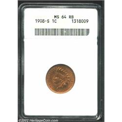 1908-S 1C MS64 Red and Brown ANACS. Better struck than most examples of this popular semi-key with a