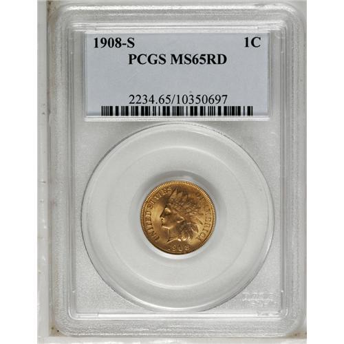 <B>1908-S<1C> MS65 Red PCGS.</B></I> A lustrous red-bronze example of this semi-key date and premier branch mint issue. The surfaces of this Gem are smooth and attractive.