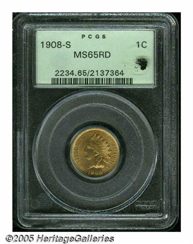 1908-S 1C MS65 Red PCGS. Eagle Eye Photo Seal, ca