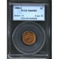 1908-S 1C MS65 Red PCGS. Nicely struck, even on the front feather tips of the headdress, with a ligh