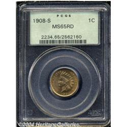 <B>1908-S<1C> MS65 Red PCGS.</B></I> A superior specimen of this semi-key date. The lustrous surfaces are a bright, golden-tan. While the strike is adequate, it is not quite full, softness being evident on the feather tips and the reverse bow. No mentionable abrasions are apparent. A few tiny flecks are scattered about, but none can be rated serious. <BR><BR><B>Important notice:</B> Heritage usually auctions material at the rate of 200-250 lots per hour. On some occasions eBay Live bid software or the Internet may not be able to keep up with the pace of the auction. We recommend placing a realistic absentee bid now as insurance to avoid disappointment. Occasionally the auctioneer may eliminate or reject an eBay Live bid, and the auctioneer may also reopen a lot after the close of the eBay live bidding (usually because we missed an audience bid), and may reject your bid even if it shows you as the winning bidder. By bidding via eBay Live, you agree that Heritage may award the lot to another bidder at its sole discretion under the circumstances described above or any other reasonable circumstances. Since eBay bids are not shown to us until we open the lot on the floor, we treat those bids just like floor bids. In most cases the floor responds before the eBay bid is presented to us, due to Internet lag time, so for consistency we have made it a policy that floor bids are always considered first over tie eBay live bids. Also please note that all Heritage lots purchased through eBay Live carry a 20% Buyer's Premium. Please make sure you read the Terms and Conditions before you bid. </span></font></tr></table></td></tr></table>