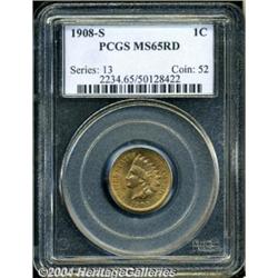 <B>1908-S<1C> MS65 Red PCGS.</B></I> Softly struck on the feathertips of the headdress, with rich, bright flowing luster, and lovely apricot-brown and red-gold coloration. The seemingly unblemished surfaces only show a few tiny flyspecks. <BR><BR><B>Important notice:</B> Heritage usually auctions material at the rate of 200-250 lots per hour. On some occasions eBay Live bid software or the Internet may not be able to keep up with the pace of the auction. We recommend placing a realistic absentee bid now as insurance to avoid disappointment. Occasionally the auctioneer may eliminate or reject an eBay Live bid, and the auctioneer may also reopen a lot after the close of the eBay live bidding (usually because we missed an audience bid), and may reject your bid even if it shows you as the winning bidder. By bidding via eBay Live, you agree that Heritage may award the lot to another bidder at its sole discretion under the circumstances described above or any other reasonable circumstances. Since eBay bids are not shown to us until we open the lot on the floor, we treat those bids just like floor bids. In most cases the floor responds before the eBay bid is presented to us, due to Internet lag time, so for consistency we have made it a policy that floor bids are always considered first over tie eBay live bids. Also please note that all Heritage lots purchased through eBay Live carry a 20% Buyer's Premium. Please make sure you read the Terms and Conditions before you bid. </span></font></tr></table></td></tr></table>