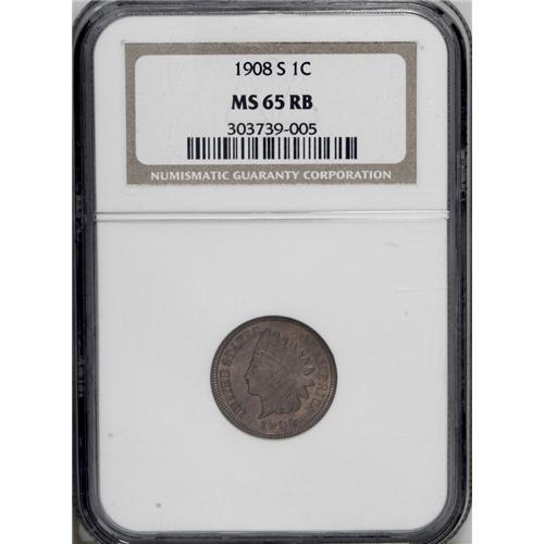 1908-S 1C MS65 Red and Brown NGC. Each side has interm