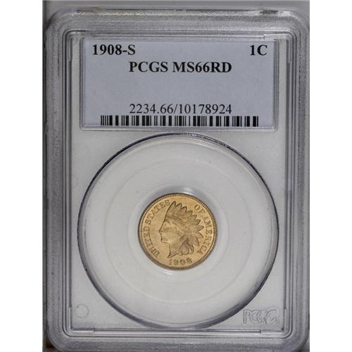 <B>1908-S<1C> MS66 Red PCGS.</B></I> This is a gorgeous example of the first minor coinage issue struck in San Francisco. Although a few feather tips lack perfect definition, this is an extremely well struck example of the issue. It has frosty orange luster and only a few miniscule spots and abrasions. It is tied for the finest certified, an extremely important opportunity for the advanced Set Registry collector. Population: 29 in 66, 0 finer (7/06).