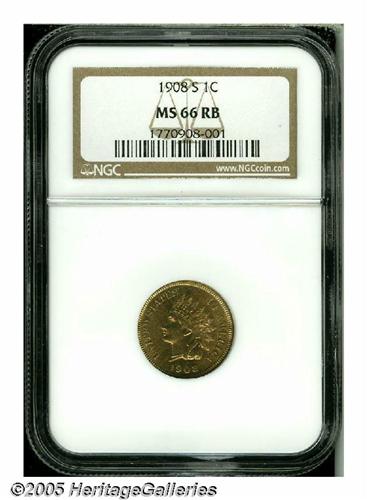 1908-S 1C MS66 Red and Brown NGC. A superior, car
