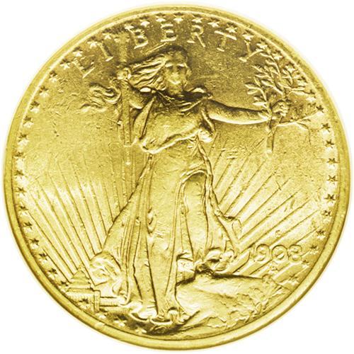 <B>1908-S<$20> AU55 NGC.</B></I> The lowest-mintage double eagle of the series, but obtainable for a price in grades lower than MS63. The many light handling marks and light highpoint rub are the obvious signs of circulation on this piece, but much luster remains, and the appeal is high.
