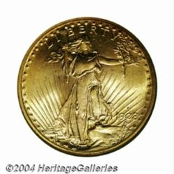 <table><tbody><tr><td><table> <TR><TD width="100%"><TABLE cellSpacing=1 cellPadding=3 width="100%" border=0><TBODY><TR><TD width="100%" bgColor=#79735c><FONT face=arial color=#ffffff size=3><B>Description</B> </FONT></TD></TR><TR><TD width="100%" bgColor=#ffffff><FONT face=arial size=2><B>1908-S $20 MS65 NGC.</B></I> The 1908-S is one of the rare issues in the Saint-Gaudens series. Not only does it have a very low mintage of only 22,000 pieces (second only to the 1907 High Relief), but it is also scarce in all grades. 1908-S twenties have a reputation for always being sharply struck, however this one shows a little softness on Liberty's knee. The surfaces show the soft, frosted luster usually seen, and there are a few small marks, particularly on the eagle's wings on the reverse that limit the already high Gem grade designation. This coin will draw a lot of attention from most advanced gold collectors. Population: 6 in 65, 2 finer (11/03).<BR><I>From a Magnificent Collection of Double Eagles.</B></I> </FONT></TD></TR></TBODY></TABLE></TD></TR></TBODY></TABLE><BR><A name=PricesRealized></A><TABLE cellSpacing=0 cellPadding=0 width="100%" bgColor=#000000 border=0><TBODY><TR><TD width="100%"><TABLE cellSpacing=1 cellPadding=3 width="100%" border=0><TBODY><TR><TD width="100%" bgColor=#79735c><A name=PR><FONT face=arial color=#ffffff size=3><B>Previous Prices from Heritage Auctions</B> </FONT></A></TD></TR><TR><TD bgColor=#f6f6ed><TABLE cellSpacing=0 cellPadding=0 width="100%" border=1><TBODY><TR><TD align=middle width="33%"><B>Date</B></TD><TD align=middle width="33%"><B>Service</B></TD><TD align=middle width="33%"><B>Price</B></TD></TR><TR bgColor=whitesmoke><TD width="33%"><B>02/01/1999</B></TD><TD width="33%">NGC</TD><TD width="33%">$25,300.00</TD></TR></TBODY></TABLE></TD></TR><TR><TD bgColor=#ffffff><FONT face=arial size=1 ?>PLEASE NOTE: All prices realized reflect the final hammer price PLUS the buyer's premium in auctions that charge a buyer's premium. Each item has a notation at the top of the listing indicating whether that lot included a buyer's premium. Example: A item that sells with a final hammer price of $100 and a 20% buyer's premium will display with a price realized of $120. All information listed is intended to be as accurate as possible, but errors are possible. Please use this guide carefully and inform us of any inaccuracies. </FONT></TD></TR></TBODY></TABLE></TD></TR></TBODY></TABLE><BR><TABLE cellSpacing=0 cellPadding=0 width="100%" bgColor=#000000 border=0><TBODY><TR><TD width="100%"><TABLE cellSpacing=1 cellPadding=3 width="100%" border=0><TBODY><TR><TD width="100%" bgColor=#79735c colSpan=6><FONT face=arial color=#ffffff size=3><B>Price Guide*</B> </FONT></TD></TR><TR bgColor=#f6f6ed><TD align=middle><B>Grade</B> </TD><TD align=middle><B>Coin World<BR>(Trends)</B> </TD><TD align=middle><B>Numismedia<BR>Retail</B> </TD><TD align=middle><B>Numismedia<BR>Wholesale</B> </TD><TD align=middle><B>Coin<BR>Universe</B> </TD><TD align=middle><B>Heritage<BR>Value Index</B> </TD></TR><TR bgColor=#ffffff><TD align=middle>64</TD><TD align=right>$20,000.00</TD><TD align=right>---</TD><TD align=right>$14,250.00</TD><TD align=right>$22,500.00</TD><TD align=right>$14,806.67</TD></TR><TR style="FONT-WEIGHT: bold" bgColor=#cccfdd><TD align=middle>65</TD><TD align=right>$40,000.00</TD><TD align=right>---</TD><TD align=right>$34,500.00</TD><TD align=right>$45,000.00</TD><TD align=right>$29,283.33</TD></TR><TR bgColor=#ffffff><TD align=middle>66</TD><TD align=right>$50,000.00</TD><TD align=right>---</TD><TD align=right>$42,240.00</TD><TD align=right>$54,000.00</TD><TD align=right>$36,400.00</TD></TR><TR bgColor=#ffffff><TD colSpan=6><FONT size=1>*All information listed is intended to be as accurate as possible, but errors are possible. No item may be returned or refused based on this information which is provided as a service to our customers. You should contact each pricing source directly to determine the accuracy of this information. </FONT></TD></TR></TBODY></TABLE></TD></TR></TBODY></TABLE><BR><TABLE cellSpacing=0 cellPadding=0 width="100%" bgColor=#000000 border=0><TBODY><TR><TD width="100%"><TABLE cellSpacing=1 cellPadding=3 width="100%" border=0><TBODY><TR><TD width="100%" bgColor=#79735c><FONT face=arial color=#ffffff size=3><B>Population Guide</B> </FONT></TD></TR><TR bgColor=#ffffff><TD align=middle><!-- Begin Output of Population Grid--><TABLE cellSpacing=0 cellPadding=0 width="100%" border=0><TBODY><TR><TD vAlign=center><TABLE cellSpacing=0 width="100%" border=1 cellsadding="3"><TBODY><TR><TD vAlign=center><TABLE cellSpacing=0 cellPadding=3 width="100%" border=1><TBODY><TR><TD vAlign=center align=middle bgColor=#f0f1e8 colSpan=2 <CENTER><FONT face=Arial size=2><B>PCGS Pop </B></FONT><CENTER></CENTER></TD><TD vAlign=center align=middle bgColor=#f0f1e8 colSpan=2><CENTER><FONT face=Arial size=2><B>NGC Pop</B></CENTER></FONT></TD></TR><TR><TD vAlign=center><FONT face=Arial size=2>(65)</FONT> </TD><TD vAlign=center align=right><FONT face=Arial size=2>9</FONT> </TD><TD vAlign=center><FONT face=Arial size=2>(65)</FONT> </TD><TD vAlign=center align=right><FONT face=Arial size=2>6</FONT> </TD></TR><TR><TD vAlign=center><FONT face=Arial size=2>(>65)</FONT> </TD><TD vAlign=center align=right><FONT face=Arial size=2>11</FONT> </TD><TD vAlign=center><FONT face=Arial size=2>(>65)</FONT> </TD><TD vAlign=center align=right><FONT face=Arial size=2>2</FONT> </TD></TR></TBODY></TABLE></TD></TR></TBODY></TABLE></TD></TR></TBODY></TABLE><!-- End Output of Population Grid--></TD></TR></TBODY></TABLE></TD></TR></TBODY></TABLE><BR><TABLE cellSpacing=0 cellPadding=0 width="100%" bgColor=#000000 border=0><TBODY><TR> <font color='#000000'><span style='background-color: #FFFFFF'><td bgcolor='#FFFFFE'> Important notice: Heritage usually auctions material at the rate of 200-250 lots per hour. On some occasions eBay Live bid software or the Internet may not be able to keep up with the pace of the auction. 