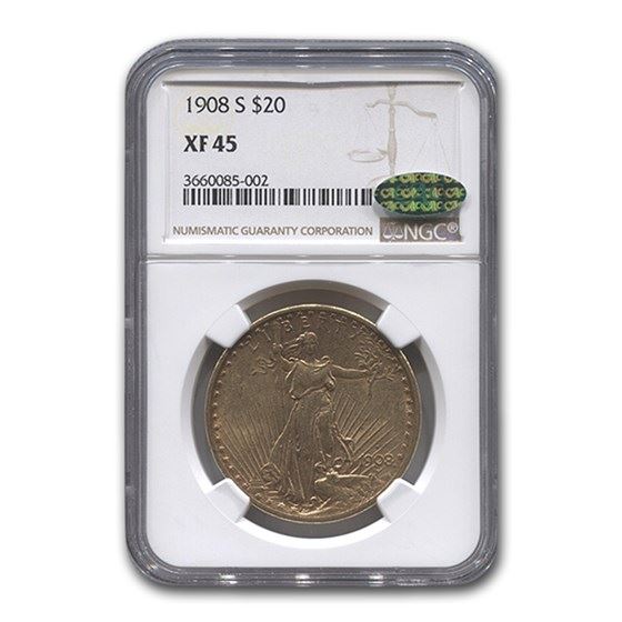 One piece 1908-S $20 St. Gaudens Gold Double Eagle XF-45 NGC CAC