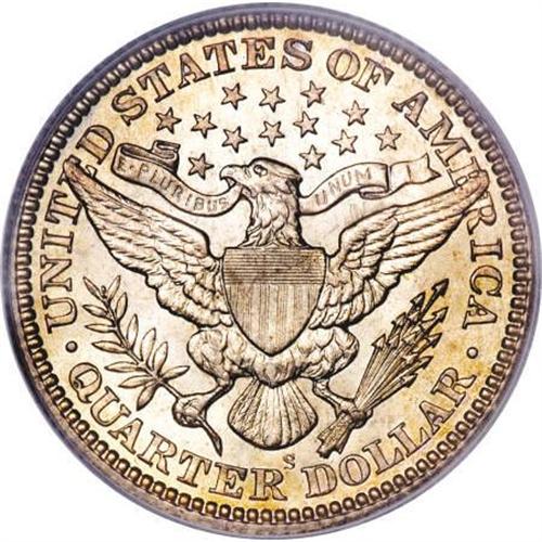 <B>1908-S 25C MS66 PCGS.</B></I> A quite scarce Barber quarter issue, with a mintage of slightly more than three-quarters of a million pieces. This lustrous, silvery Premium Gem boasts a light dusting of orange-gold at the margins. The strike is essentially full, and there are no singular abrasions save for a small tick on Liberty's chin. Nearly unsurpassable: PCGS has certified two pieces finer (1/08).<BR><I>From The Southwest Collection.</B></I><BR><BR><B>Coin Engraver:</B> Charles E. Barber<BR><BR><b>Shipping:</b> Coins & Currency (<a target="_blank" href="http://www.heritageauctions.com/common/shipping.php">view shipping information</a>)